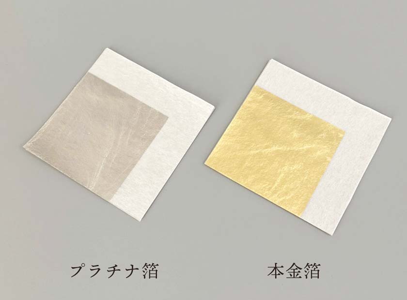 器の雰囲気やデザインに合わせて選べるよう、本金箔とプラチナ箔の2種類をご用意しました。