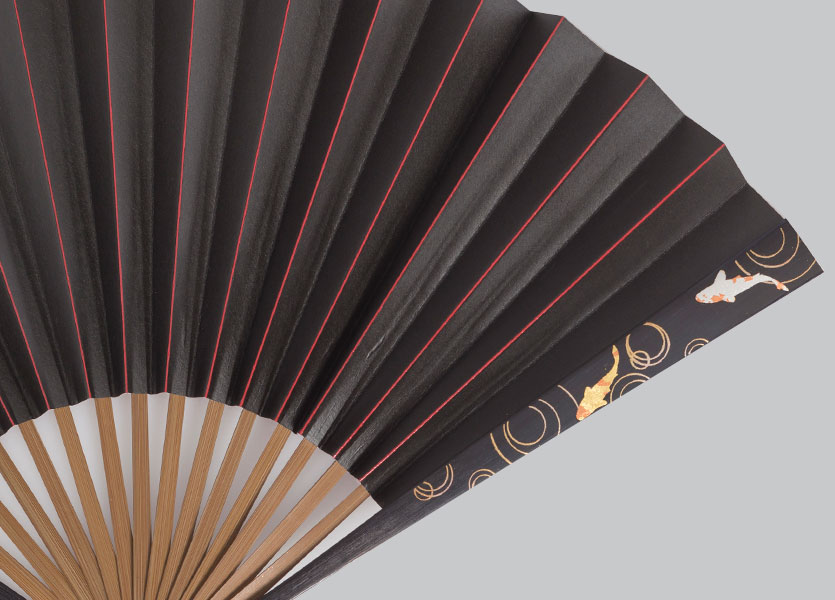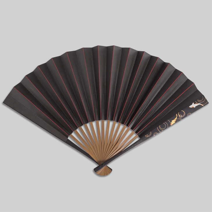 柿渋脇漆扇子 鯉(黒赤)