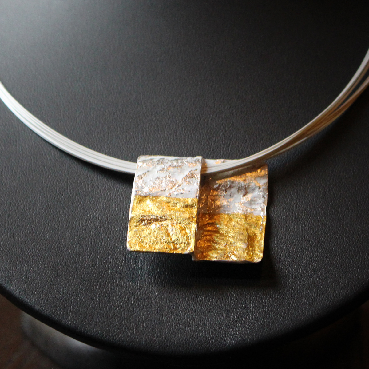 SV820、金箔、銀箔、顔料、ステンレスワイヤー、金具:真鍮にロジウムメッキ
