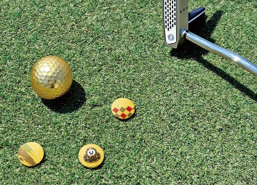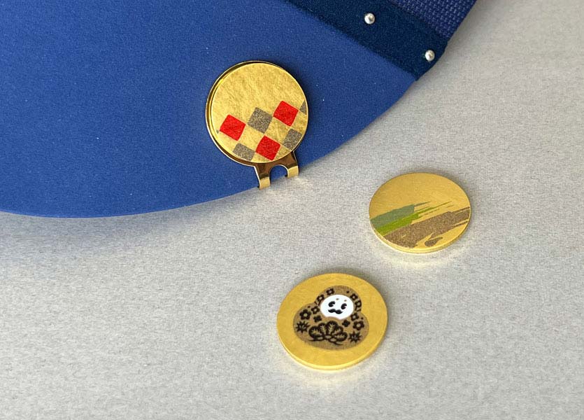 箔一ではこのゴルフマーカーをファッションとしてとらえ、個性を表現してゴルフの楽しみを一層盛り上げるものとして、美しい金箔で彩りました。