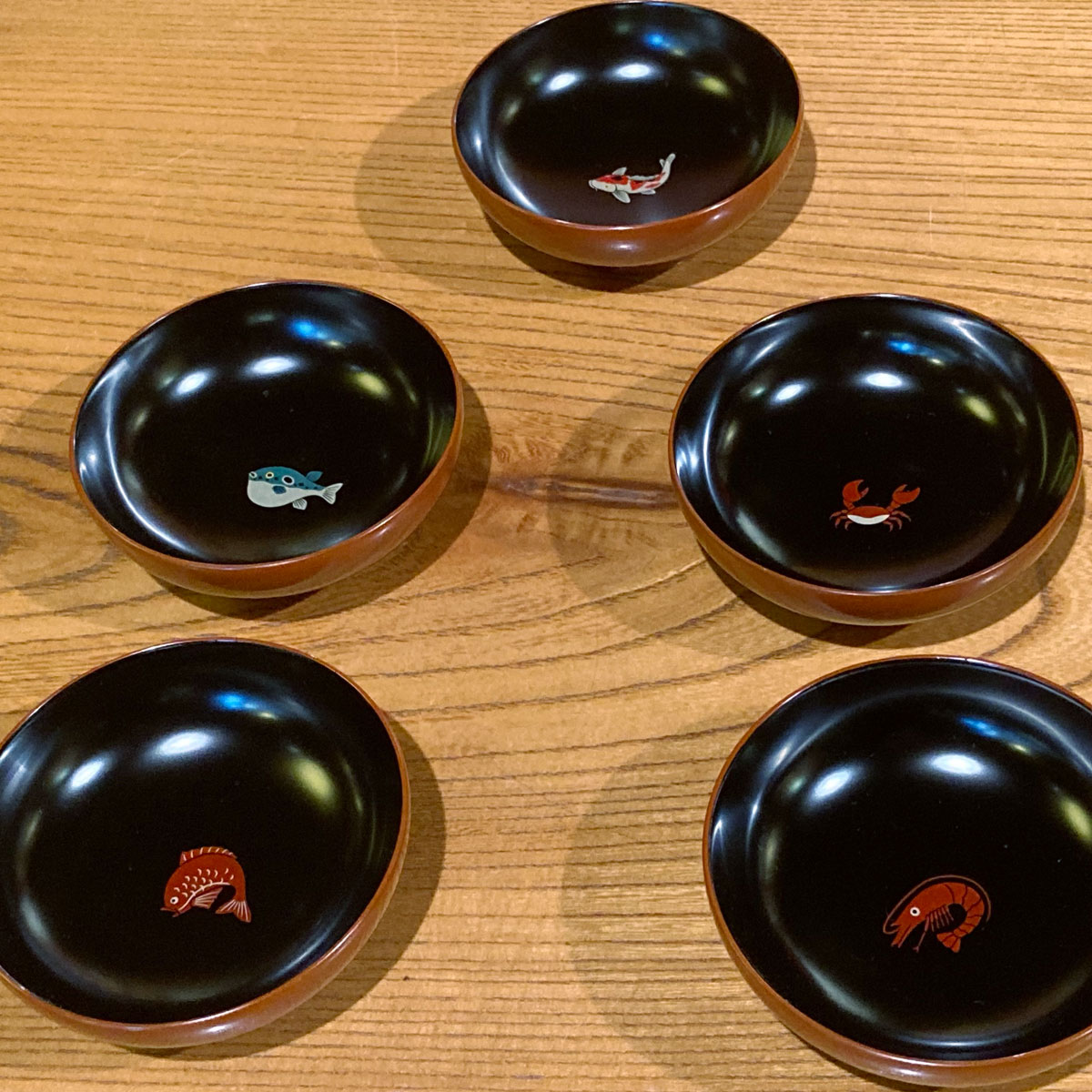 《しつらえ》小皿 吉祥(魚)5皿揃 (田谷漆器店)