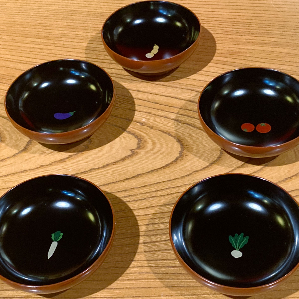 《しつらえ》小皿 吉祥(野菜) 5皿揃 (田谷漆器店)