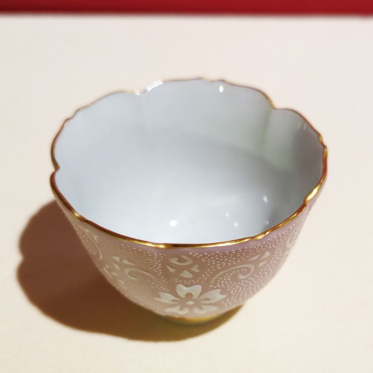 かわいらしいサイズの盃に、イッチンを使用して加飾された白粒の桜が繊細で上品な雰囲気を演出してくれています。
