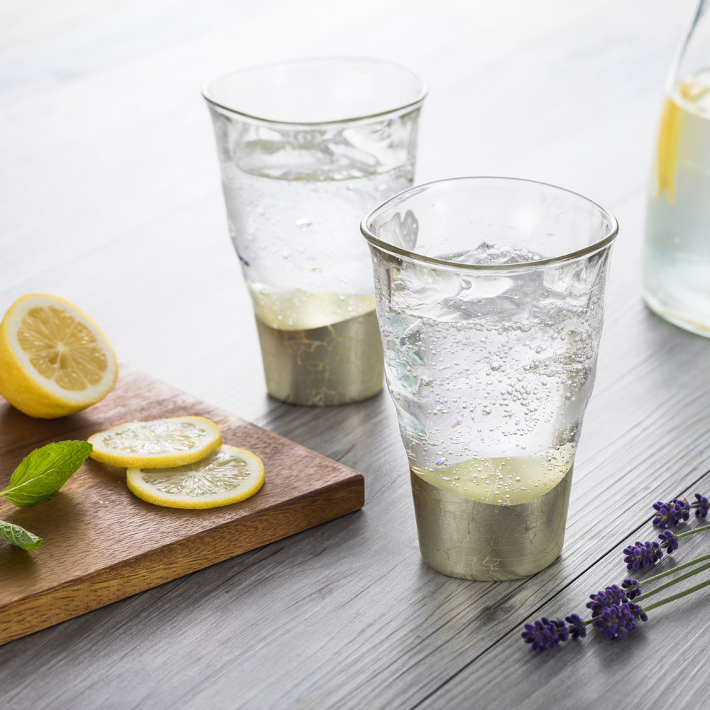 小ぶりな使いやすいサイズ。ビールグラスとしておすすめで、毎日でもつかって楽しんでいただきたいグラスです。金箔に入った独自のクラック模様が作る光と影が、優雅なひと時を演出します。「貫入 タンブラー」より一回り小さめのサイズです。
