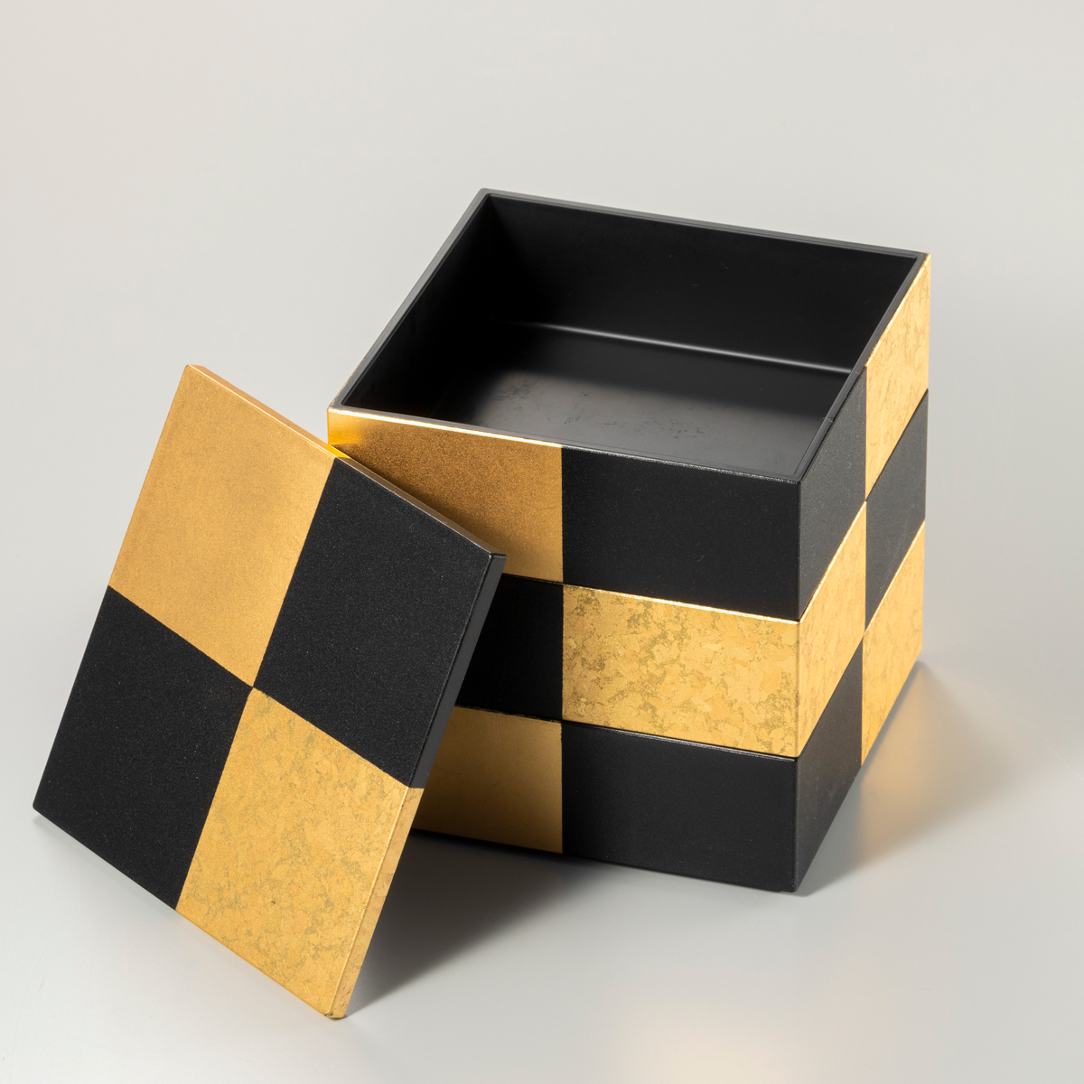 贅沢を味わうお重でおもてなし 箔一で長く愛されてきた華おぼろ。箔が幾重にもなって見える箔加飾で市松模様を表現しています。 上品に輝く金沢箔のお重は鮮やかな食材はもちろん、落ち着いた色味の料理に華を添えてくれるので、 秋の行楽やお祭り、親戚同士の集まりでも、金沢箔のお重を使えばいつもの料理も簡単におもてなし感を出すことができます。お菓子を囲み話題が弾むティータイムに使うのもおすすめです。 また、アクセサリーや化粧品など細々したものを収納するボックスとしてもお使いいただけます。
