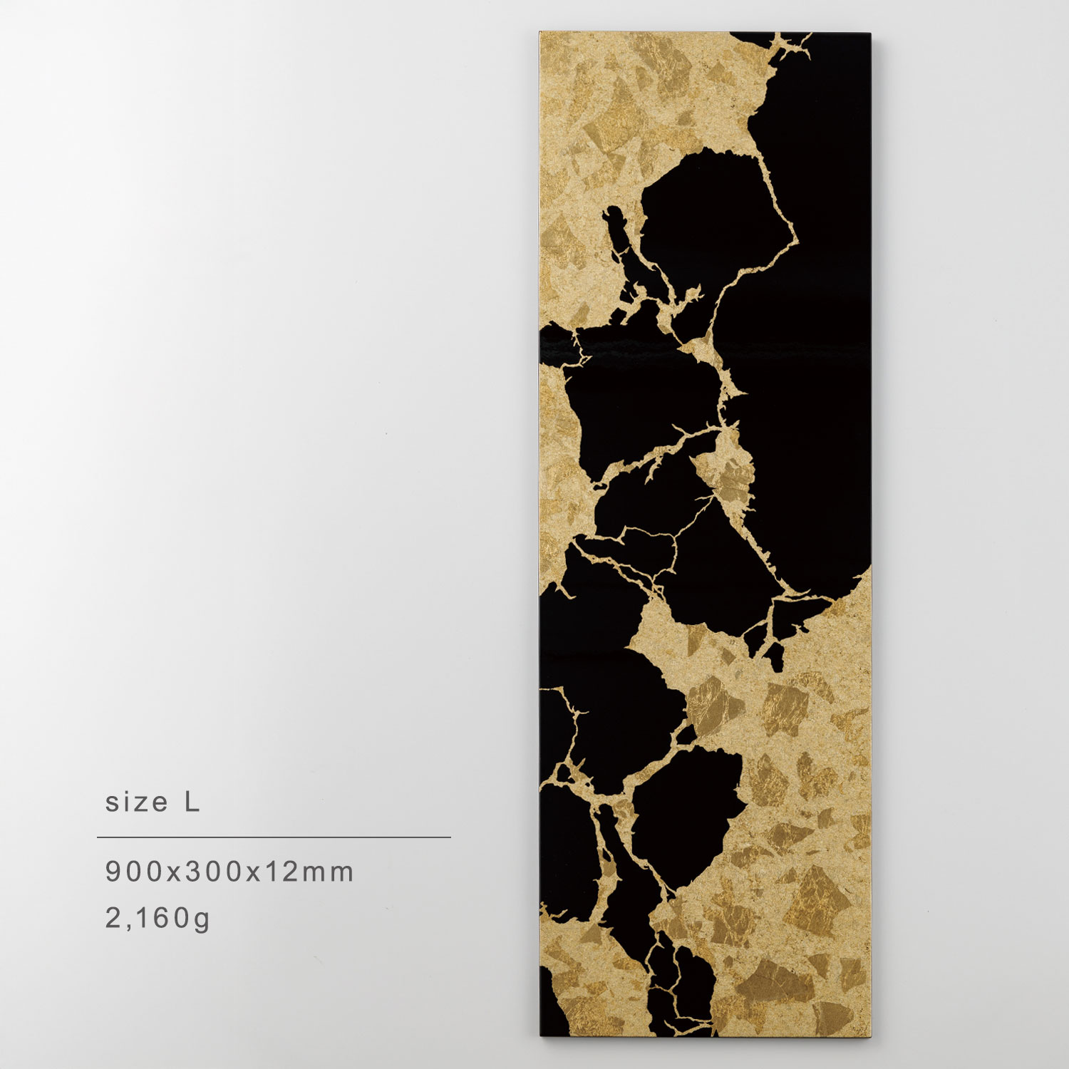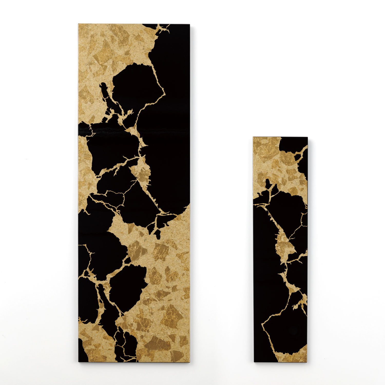 日本で生まれた、割れや欠けのある器を修復する伝統技法「金継ぎ」を、金沢箔で表現しました。