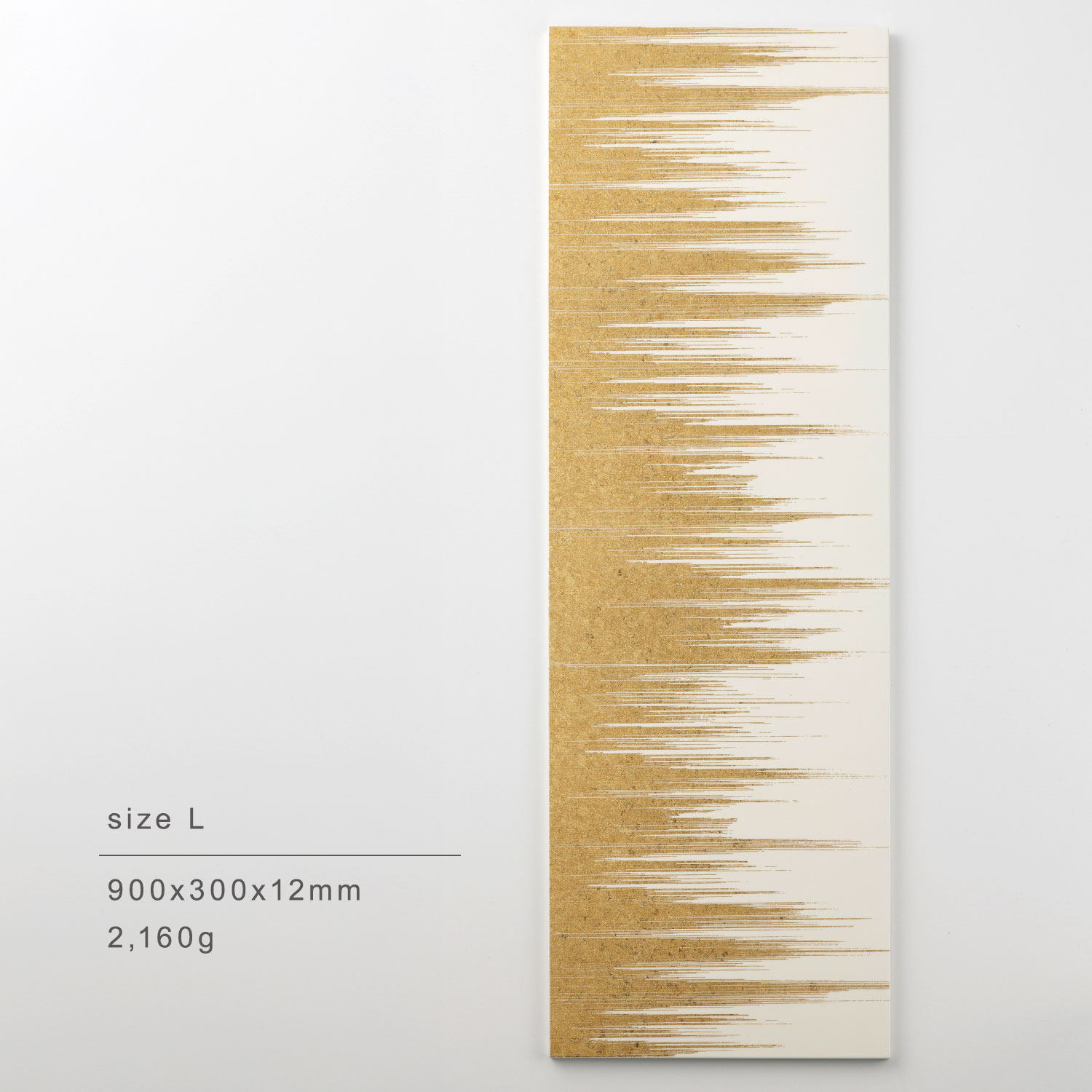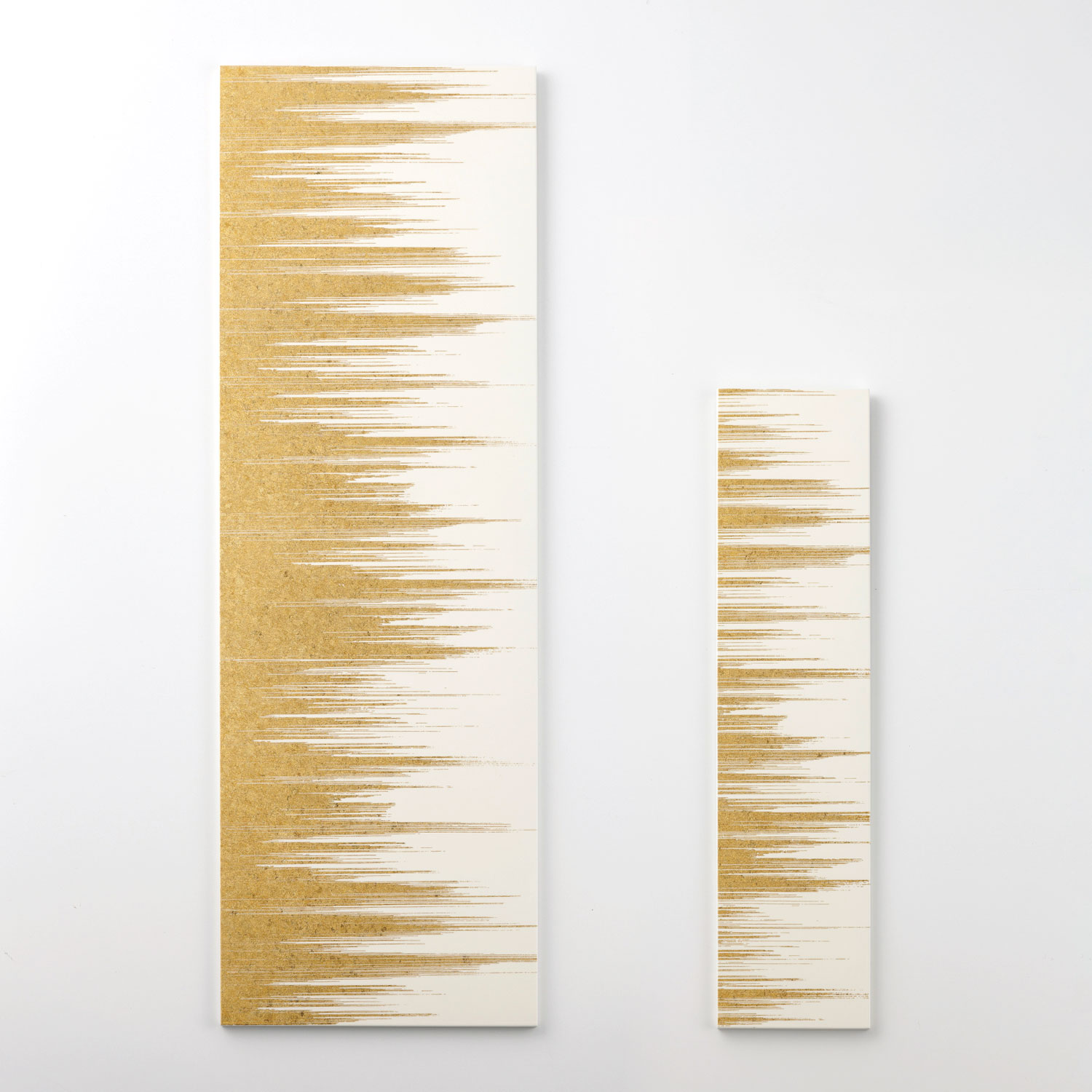 日本の左官職人が受け継ぐ伝統技法「櫛引」を、金沢箔で表現しました。