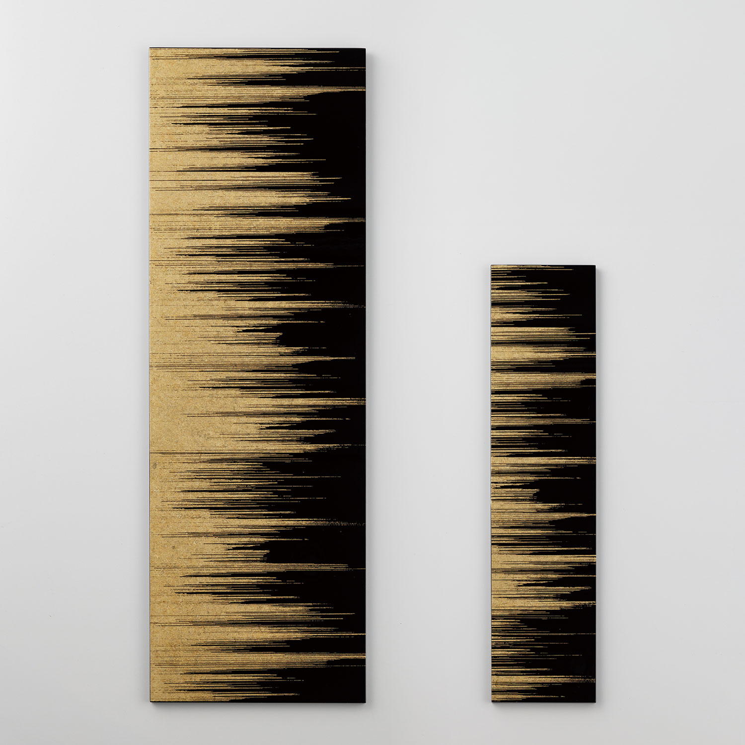 日本の左官職人が受け継ぐ伝統技法「櫛引」を、金沢箔で表現しました。