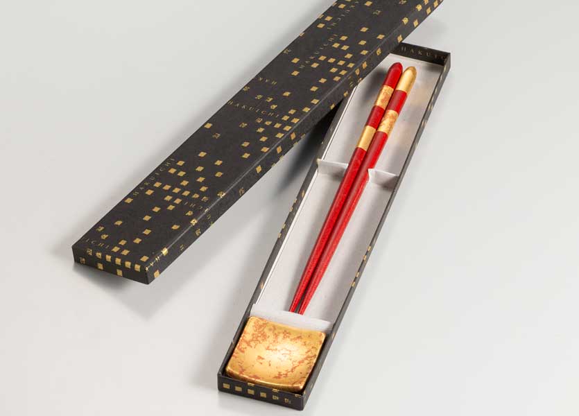 朱のやさしい色合いに金沢箔の輝きを添え、使うたびに心が弾むような温かみを感じさせます。