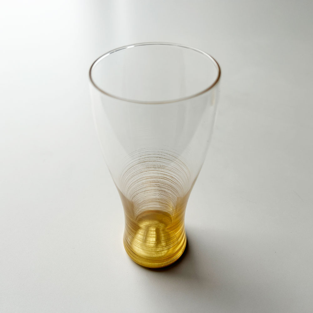 本金箔ならではの陰影のゆらぎと繊細な千筋が、家飲み時間に華を添えます。上にいくに従って消えていく千筋は、弊社独自の技術です。