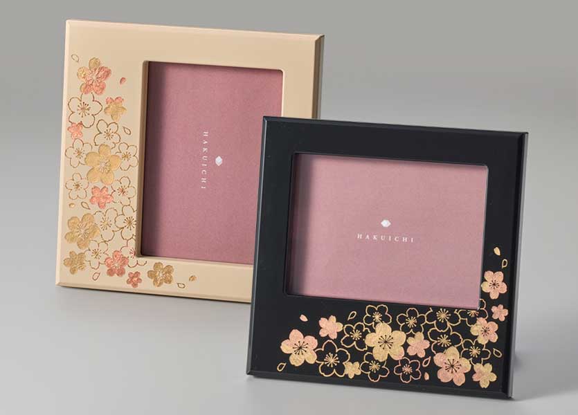 光を受けてきらめく箔の輝きが、季節の移ろいを映し出す、伝統の技が息づくフォトフレーム。