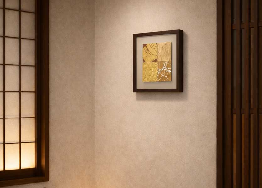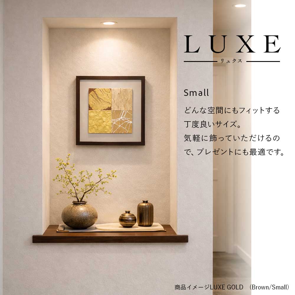 自然界をモチーフに箔を演出させたインテリア これまでにない、箔の新しい表現に挑戦したパネルは 和洋問わずさまざまな空間にお使いいただくことができます。 時の流れとともに空間に溶け込んでいく様子を いつまでも楽しんでいただけます。 Smallは、どんな空間にもフィットする丁度良いサイズ。気軽に飾っていただけて、プレゼントにも最適です。