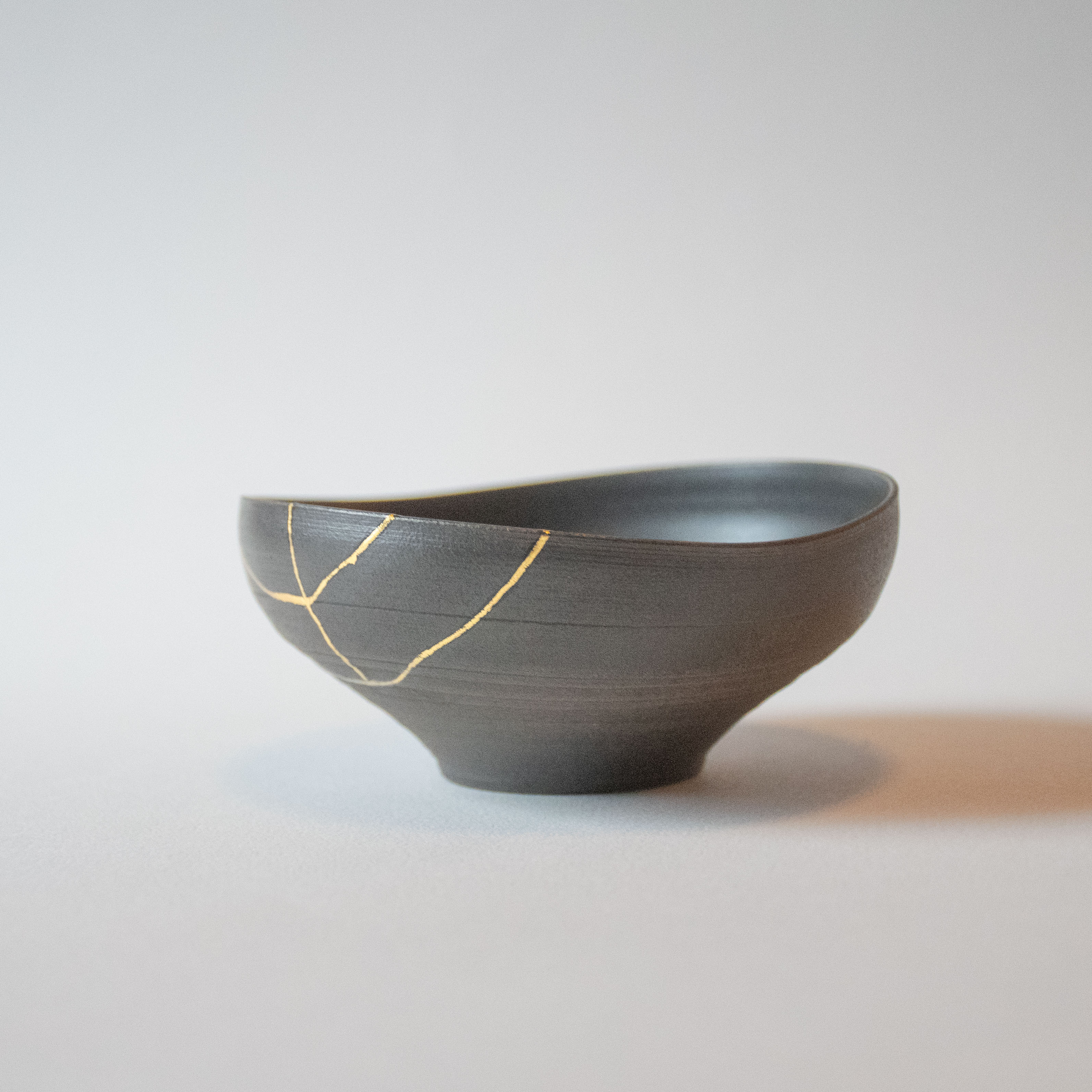この器のもうひとつの魅力は、使い込むほどに変化し味わいが深まる点です。器の表面の凹凸や金継ぎ部分は、使うごとに馴染み、ひとつとして同じ表情にならない「自分だけの風合い」へと育っていきます。年月を重ねるごとに、使い手自身の歴史を刻み込んでいく器として楽しめます。