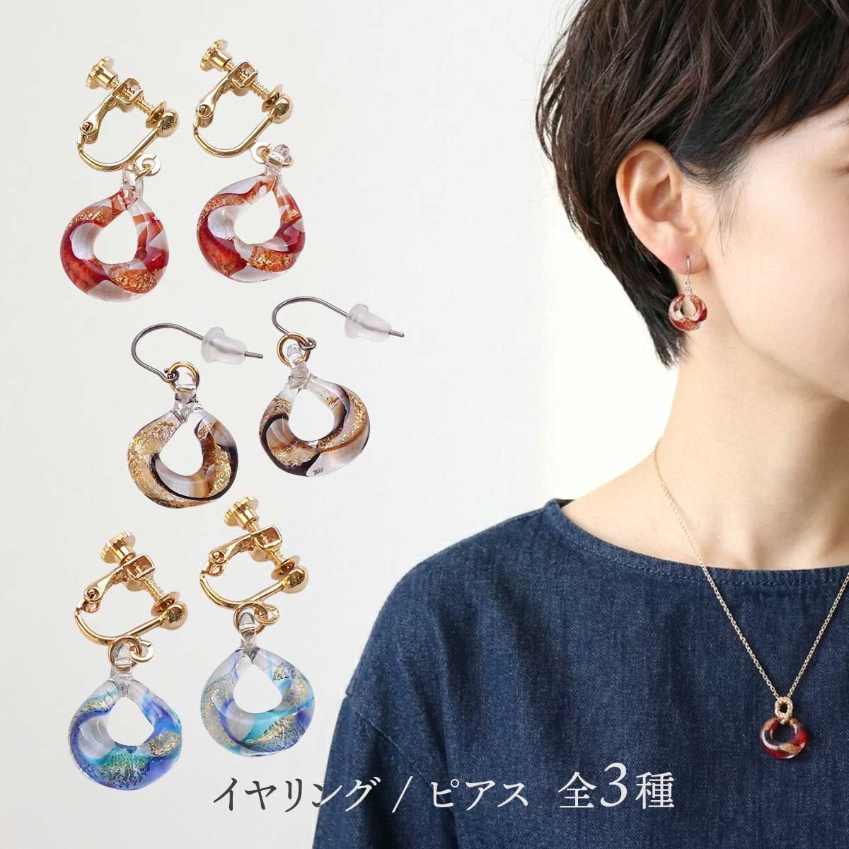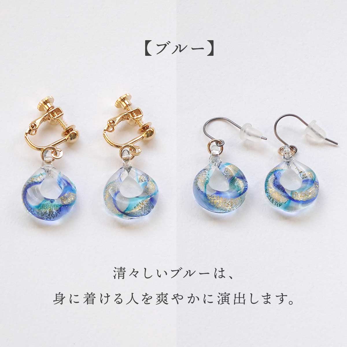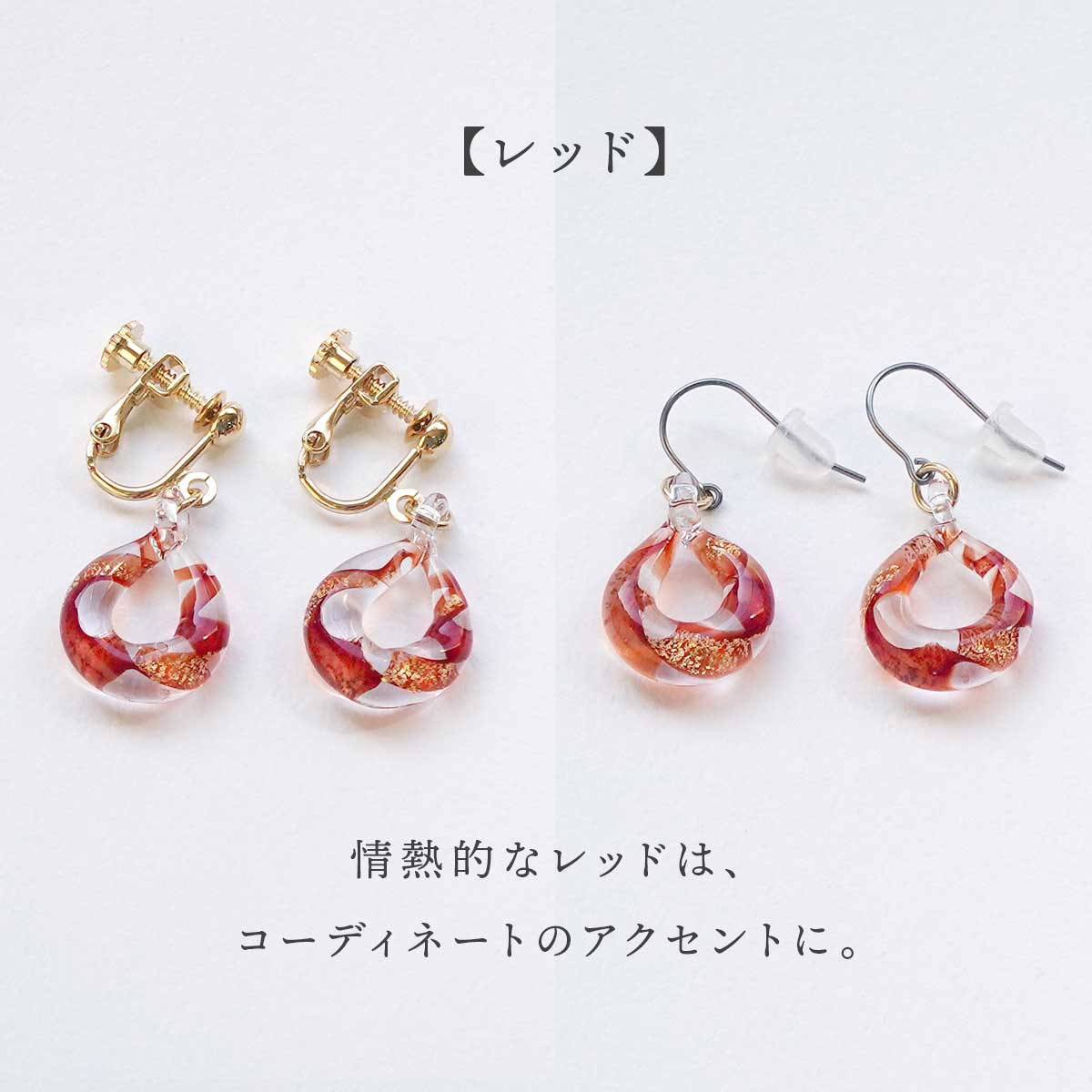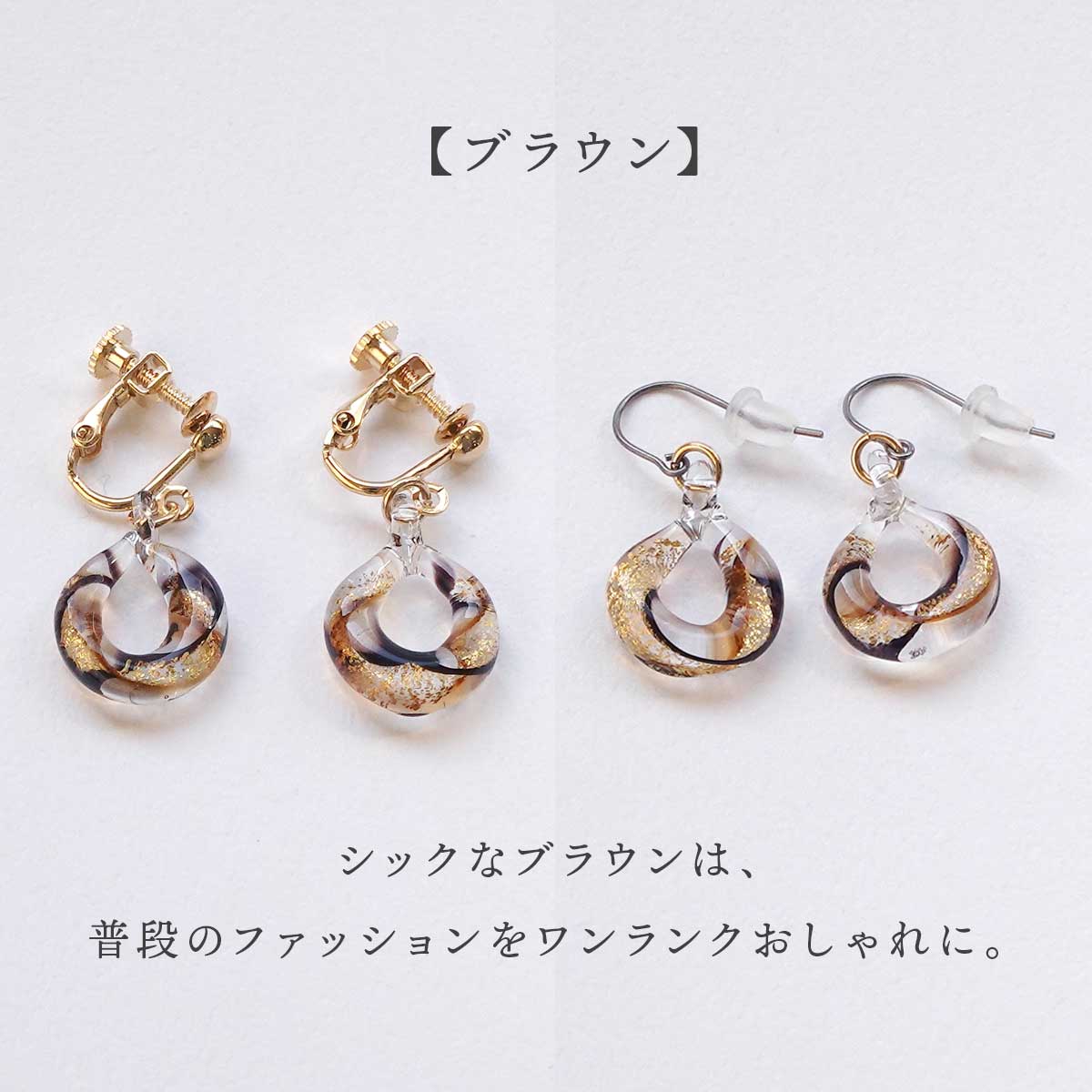 耳元で揺れるたびにガラスの中で金箔が煌めきます。