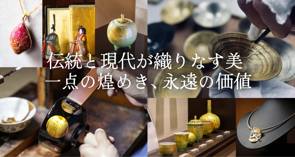 春は桜を思わせる華やかな箔の器で食卓を彩り、夏は涼やかなガラスと金箔の組み合わせで涼を演出。秋には紅葉を映すような深みのある輝きを、そして冬は、クリスマスやお正月など特別なイベントを金沢箔の輝きでより一層華やかに。煌めくテーブルウェアやインテリアが、心に残るひとときを演出します。