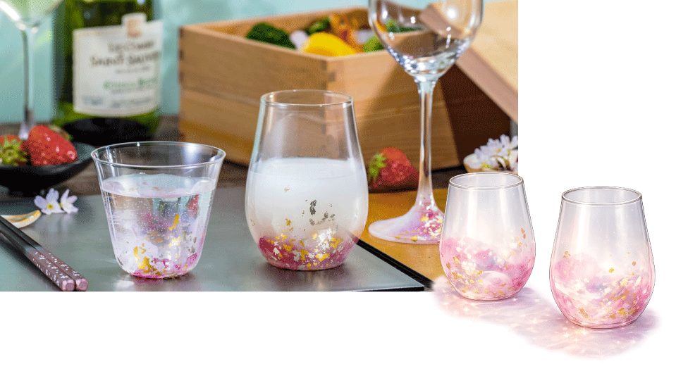 冷酒やワイン、ソフトドリンクまで、注ぐだけで季節感のある一杯に。