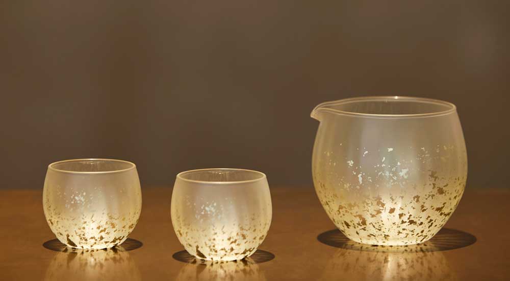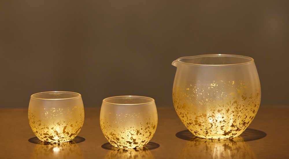 金箔を使った酒器セットやビアグラスは見た目もゴージャスで、銀婚式や金婚式の一生に一度しかない特別な節目をお祝いするギフトにふさわし贈り物です。それでいて、日々の食卓や乾杯の時間を特別なものにできる実用品です。