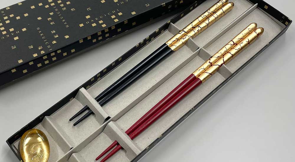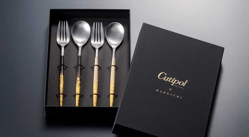 洗練されたデザインと高い品質で世界中で愛されるカトラリーセットに、箔一の職人技が加わることで上品な輝きと華やかさを持ち合わせ、さらにモダンなスタイルへと昇華されています。和洋どちらのテーブルコーディネートにも溶け込むカトラリーセットは、日常にも使える実用性と特別な日を彩る特別感も兼ね備えていてお祝いにふさわしいギフトです。