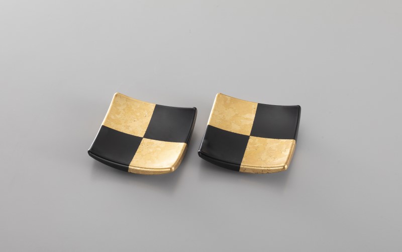 箔の表情が豊かな市松模様の箸置き2個セット。大きめのサイズで、四方が上向きにゆるやかなカーブになっているため、薬味などを入れるまめ皿にもお使いいただける箸置きです。また、上下左右にどこまでも途切れることなく繋がっていく市松柄は繁栄の意味があり、古くから愛されています。